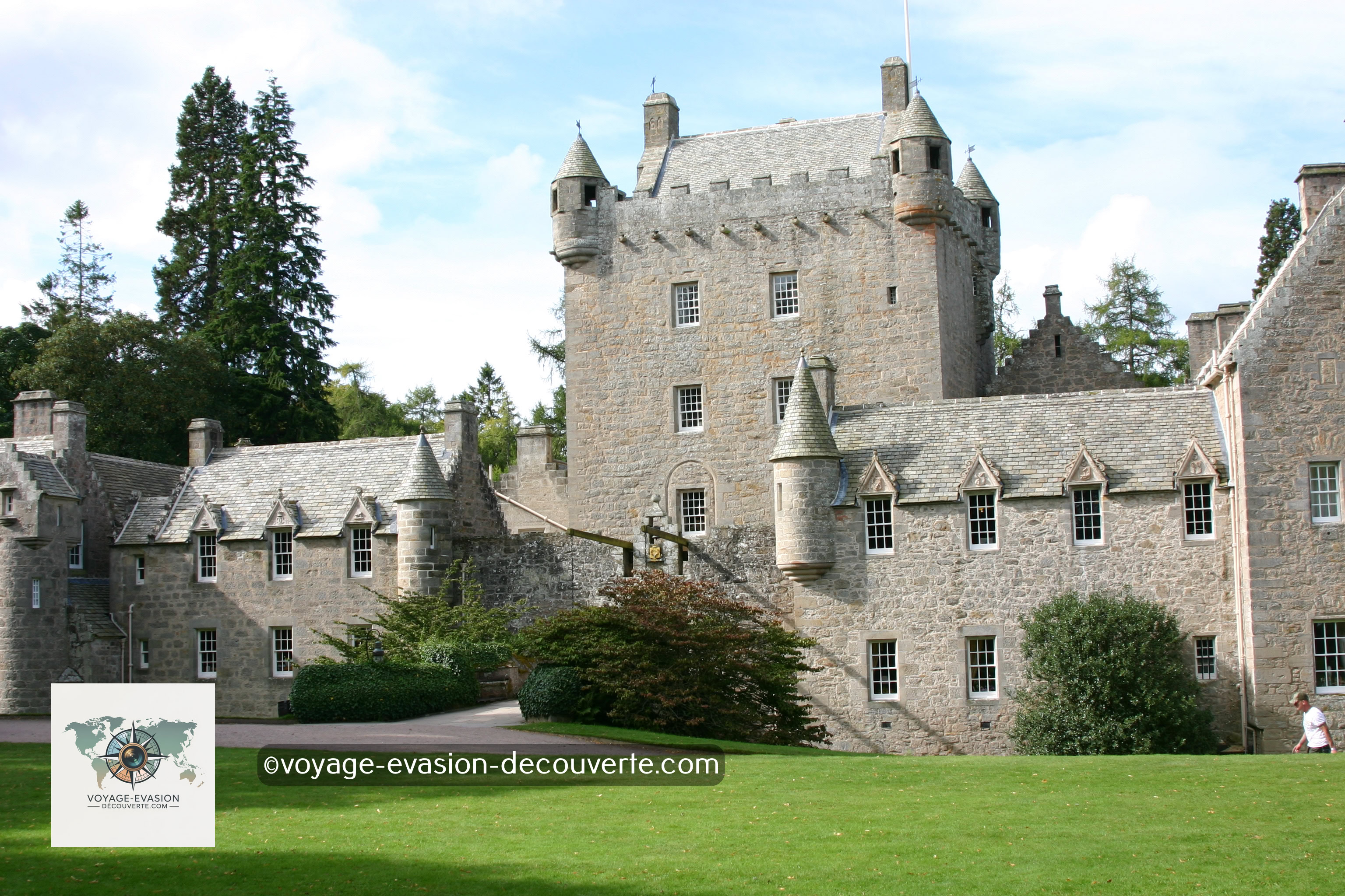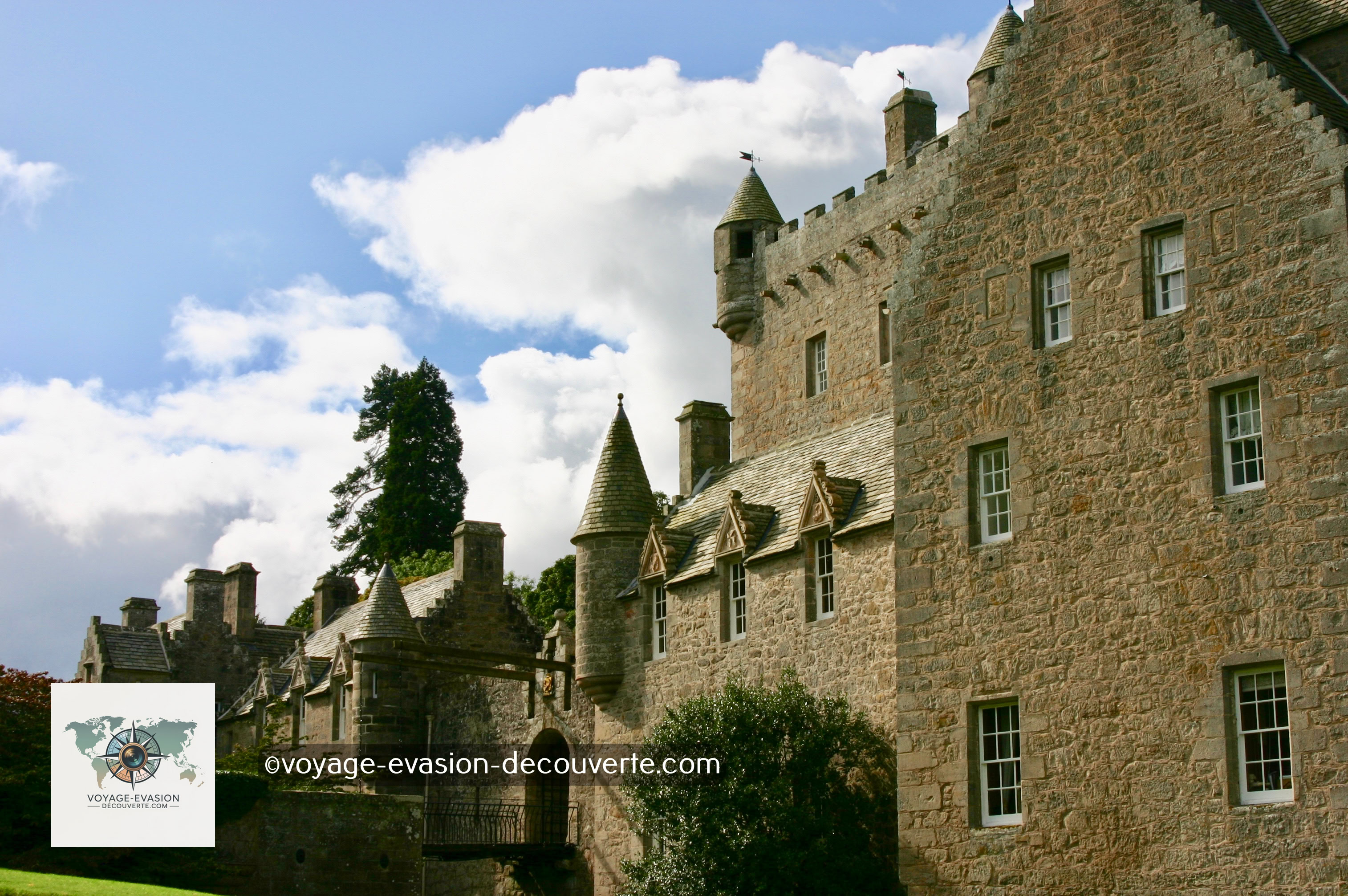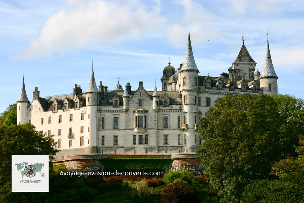 Avec ses tourelles pointues et ses façades claires, il évoque plus un château de conte de fées qu’une forteresse écossaise.