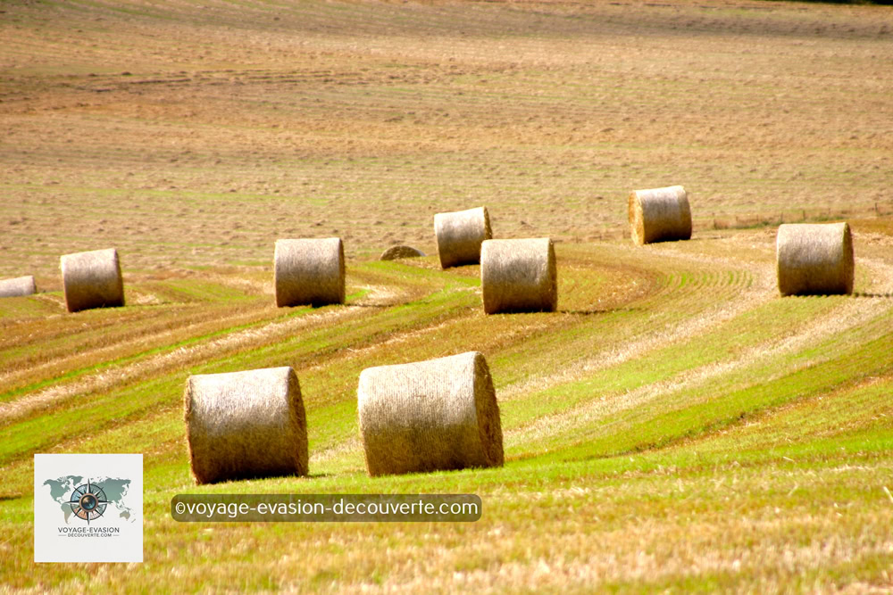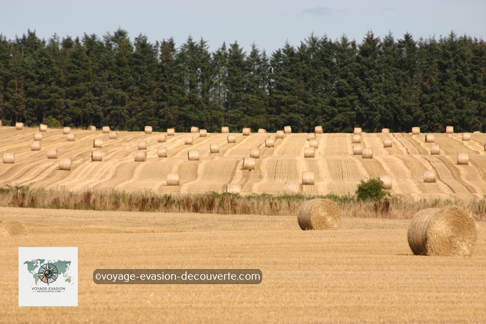 La route sinueuse traverse de superbes paysages agricoles — les terres fertiles du Strathmore — où s’étendent à perte de vue les champs dorés et les pâturages paisibles où broutent les célèbres bœufs des Highlands.