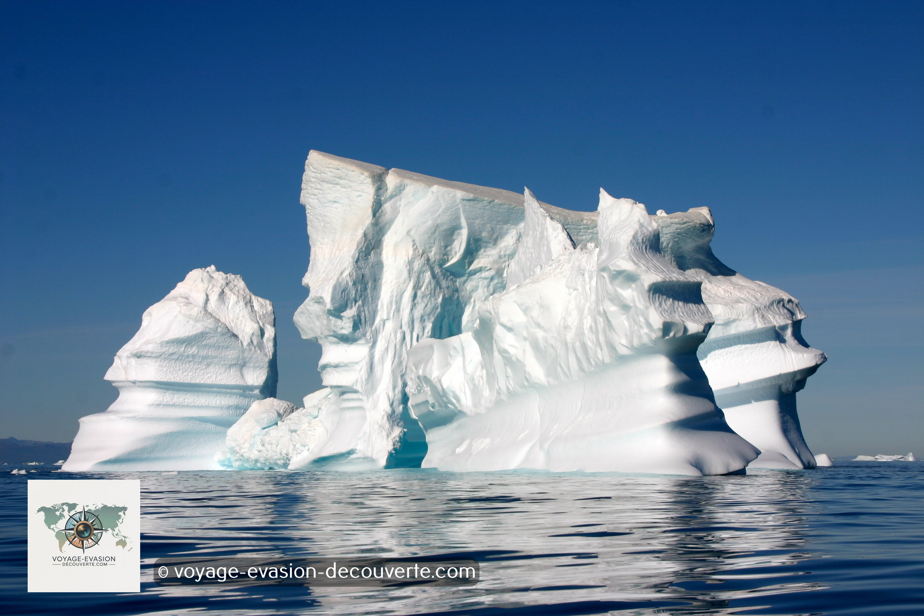 Véritables vaisseaux de glace, ils dérivent lentement, majestueux et menaçants à la fois, emportés vers leur dernier voyage sous la seule impulsion du vent et du courant.