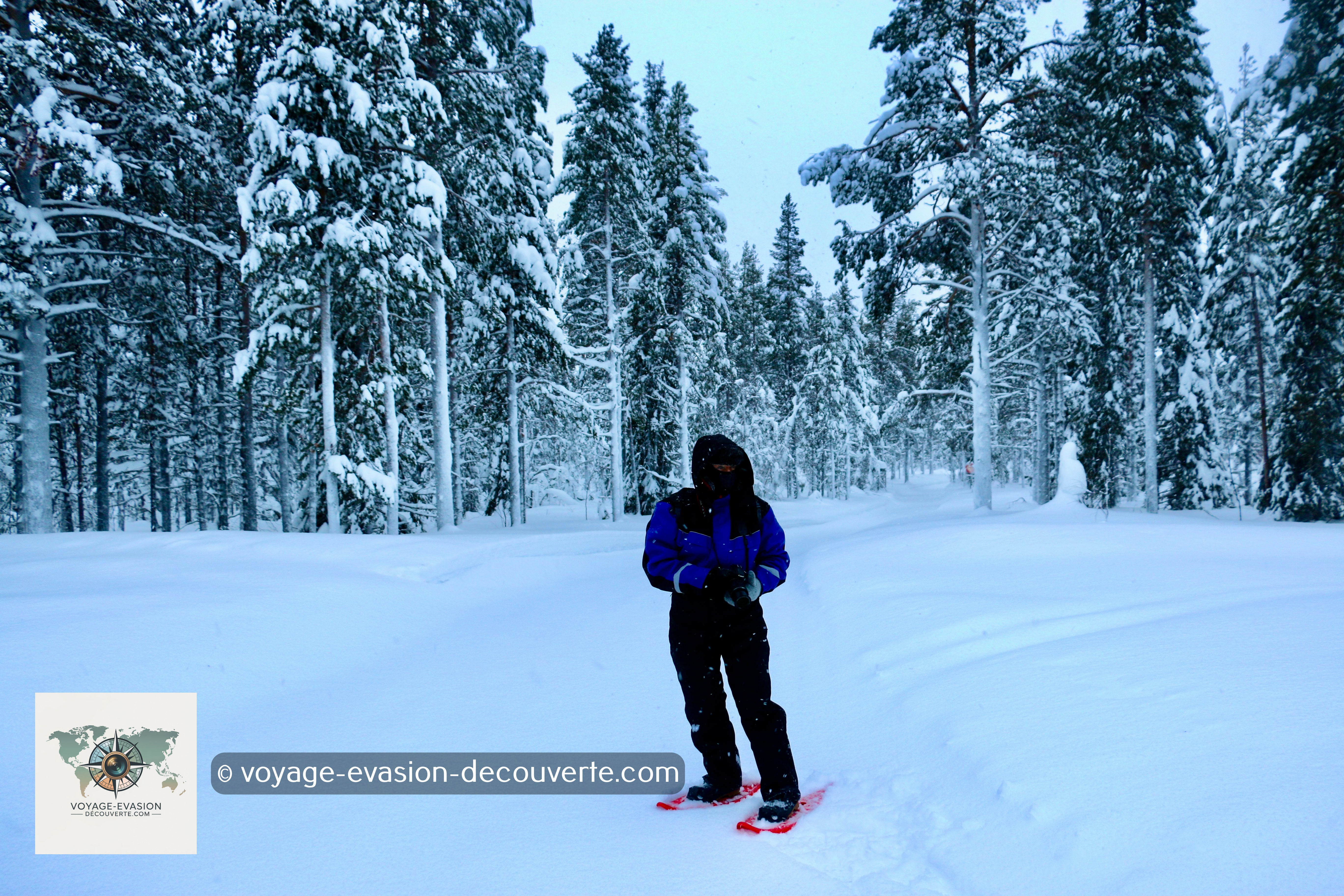 Pour explorer ces étendues immaculées, rien ne vaut les raquettes. Dès que l'on quitte la piste principale pour s'enfoncer profondément dans la forêt, on a d'abord l'impression de disparaître dans la poudreuse. Puis, au bout de quelques minutes, la sensation devient agréable et l'on se surprend à apprécier cette nouvelle façon de marcher.