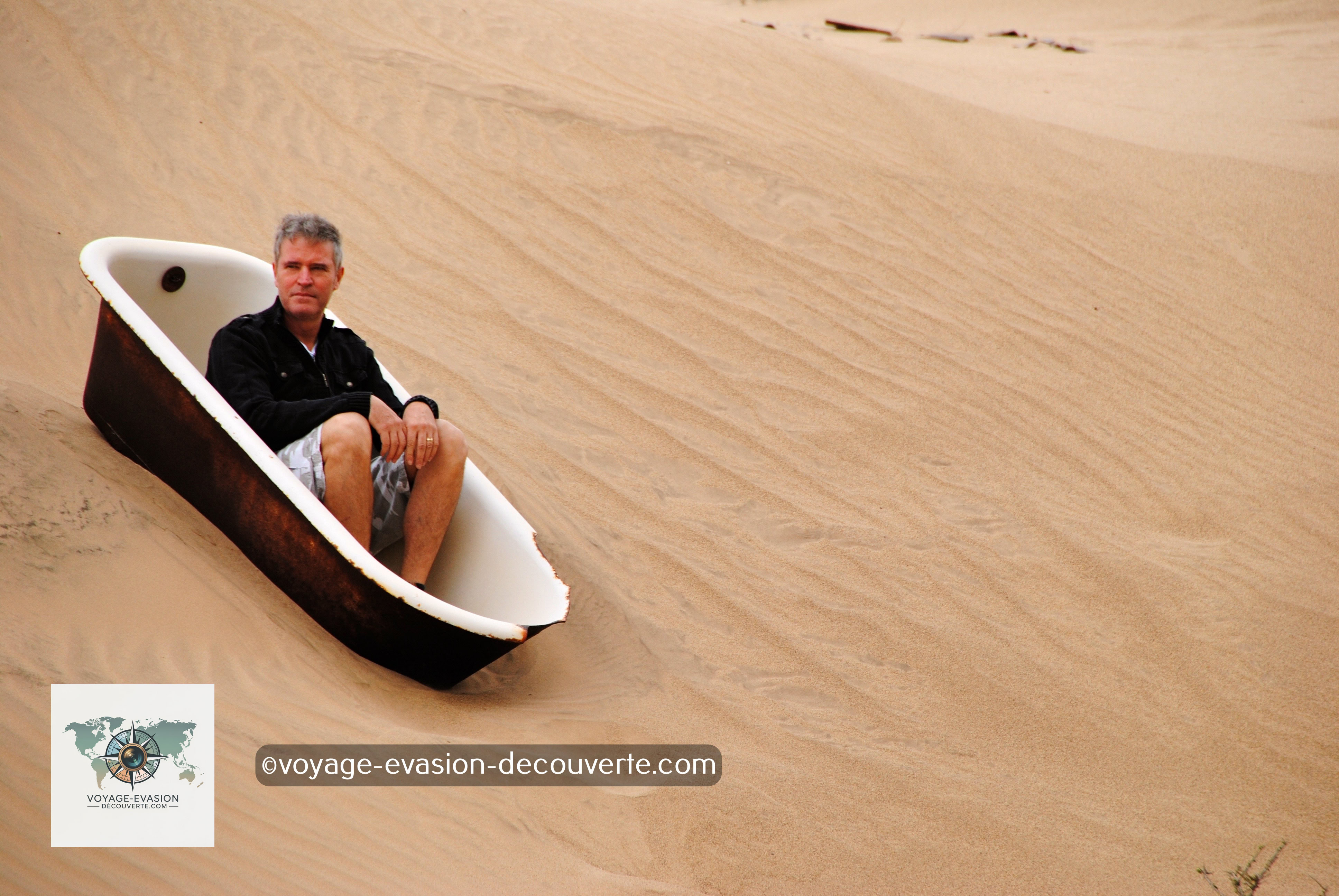 Après une nuit réparatrice, nous avons dit au revoir à la région centrale du Namib pour poursuivre notre périple vers le Nord. Nous avons longé la limite du parc de Namib-Naukluft, traversant le village de Solitaire, un lieu isolé dont le nom semble si bien lui convenir… Poursuivant notre route à travers les vastes Plains de Gravier, paysages lunaires et presque déserts, nous avons enfin rejoint la côte Atlantique à Walvis Bay.