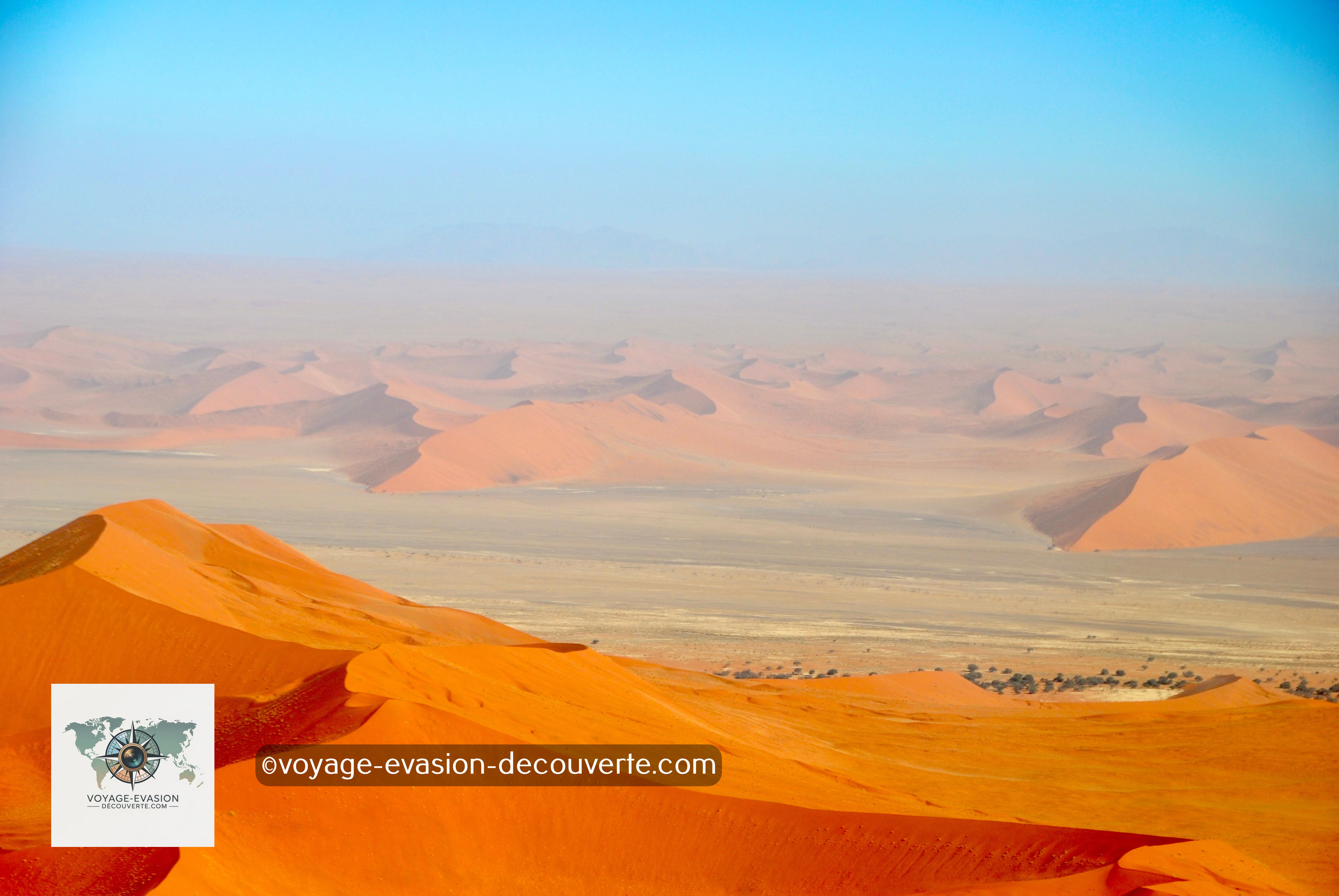 Pour les plus courageux, l’ascension de la Dune 45 offre une vue imprenable sur Sossusvlei et le désert environnant. La chaleur est intense, étouffante même, mais la beauté des paysages récompense largement l’effort.