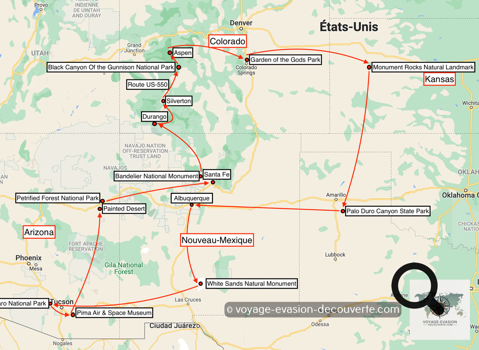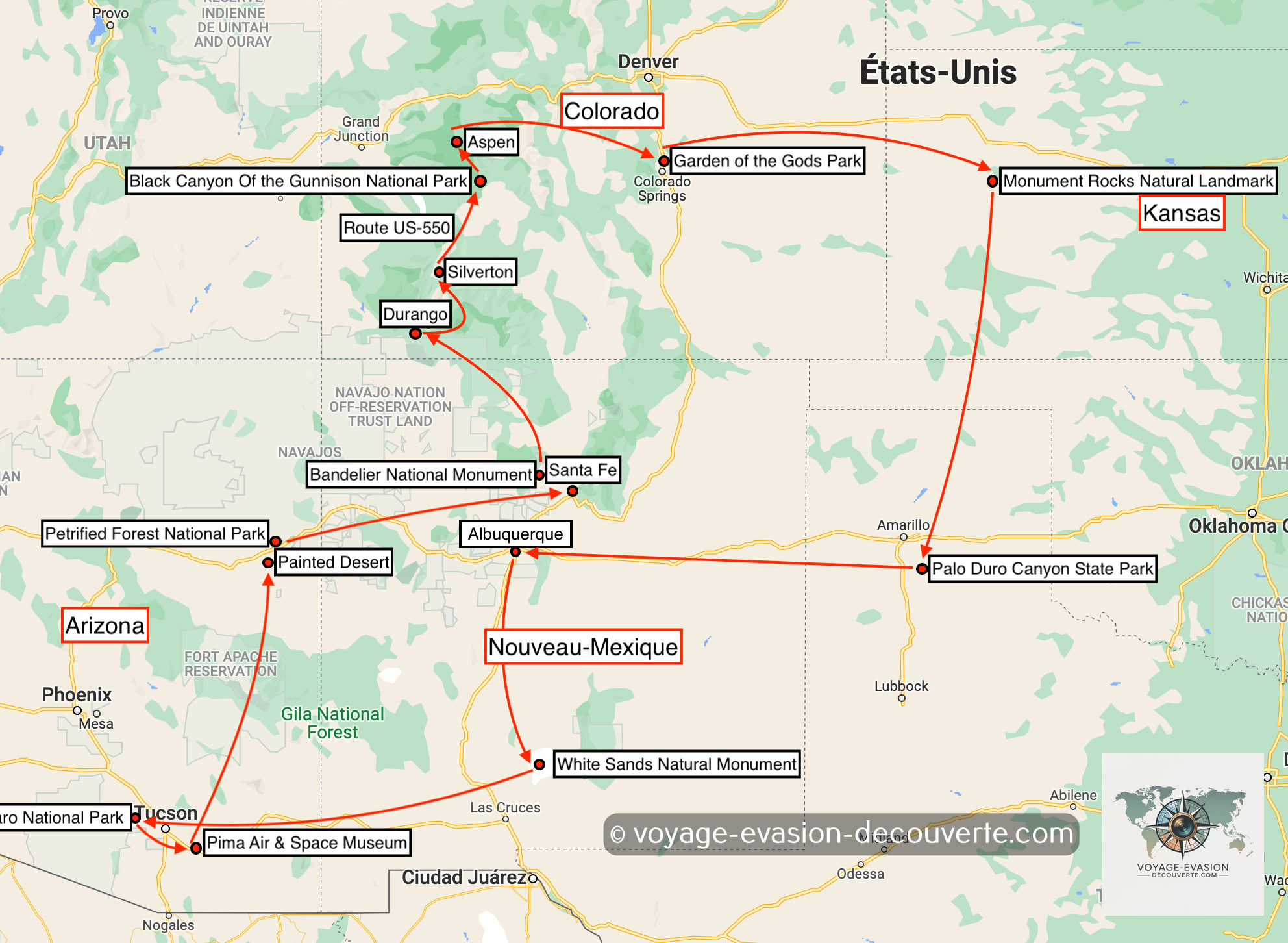 Nouveau Mexique - Arizona - Colorado - Kansas - Texas
