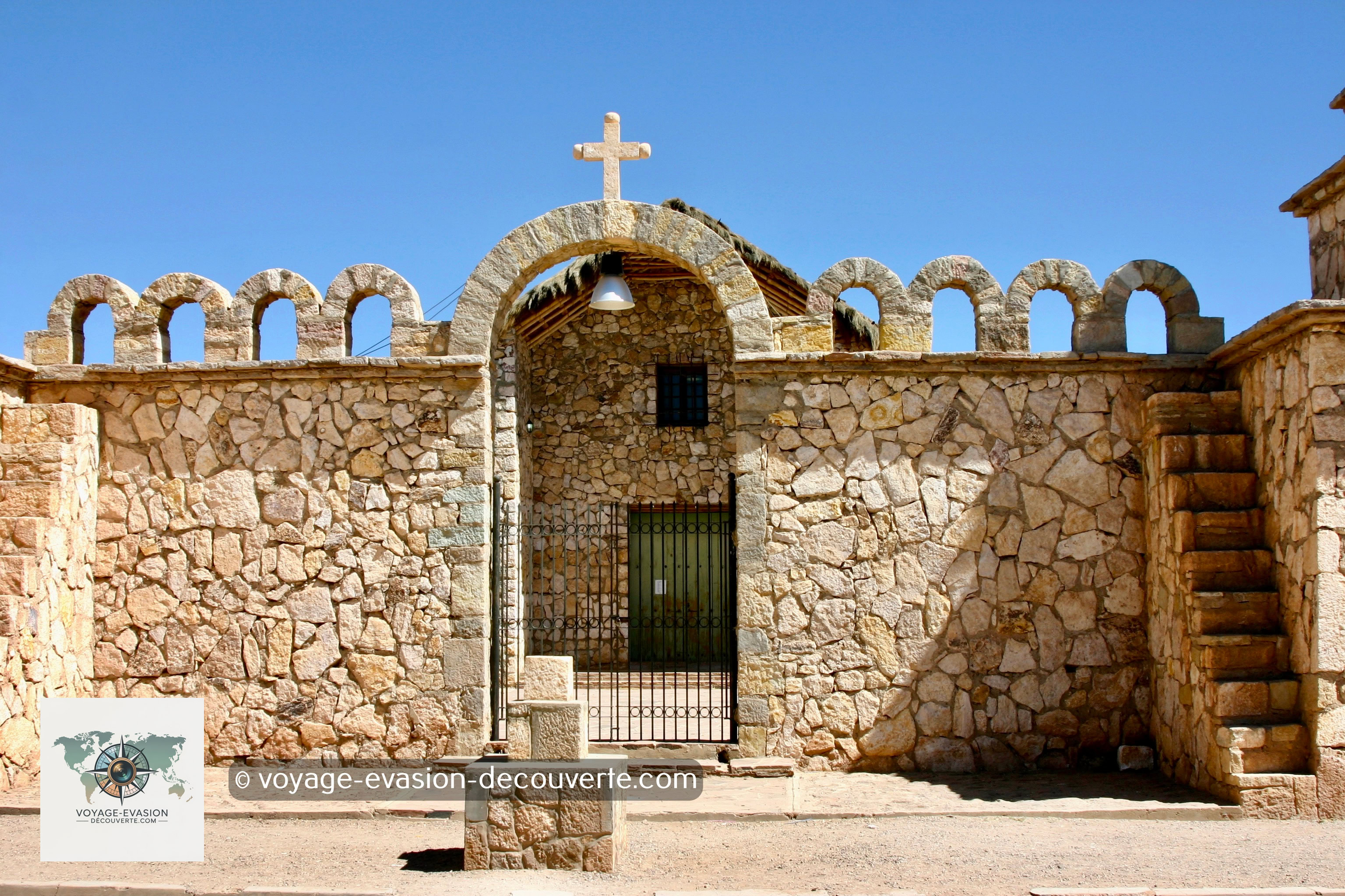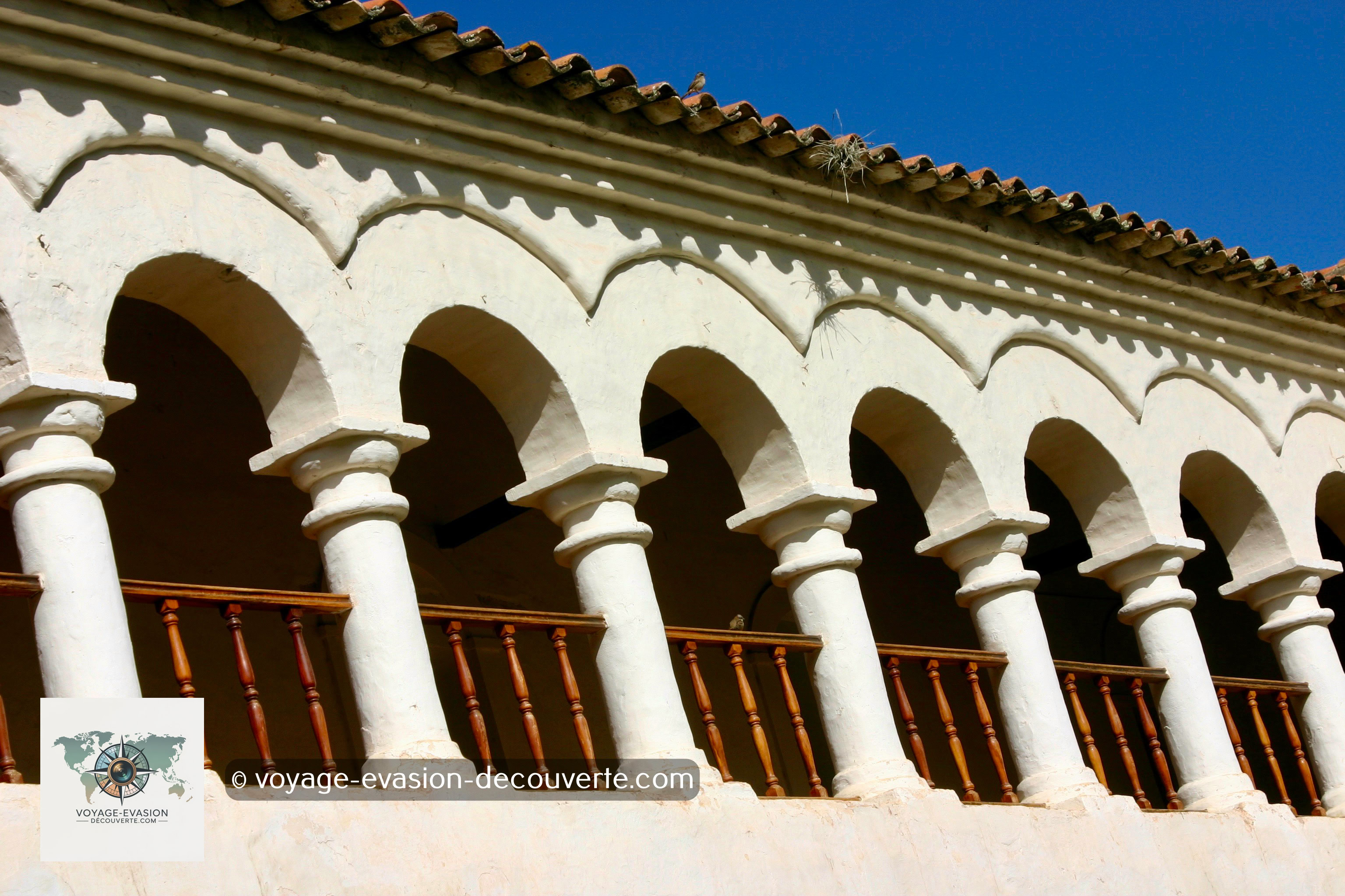 Son architecture blanche aux dômes bleu azur contraste magnifiquement avec le ciel limpide des Andes.