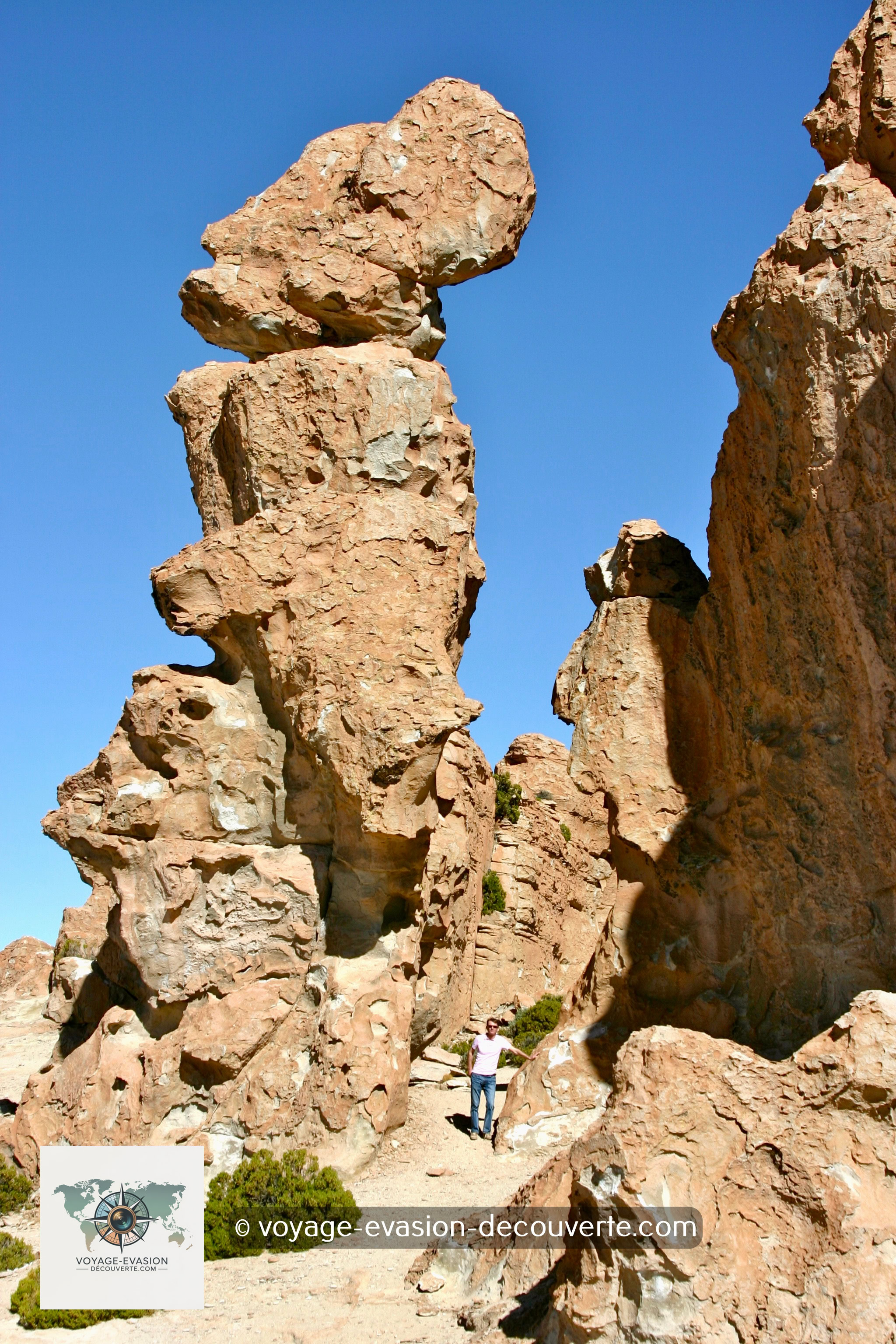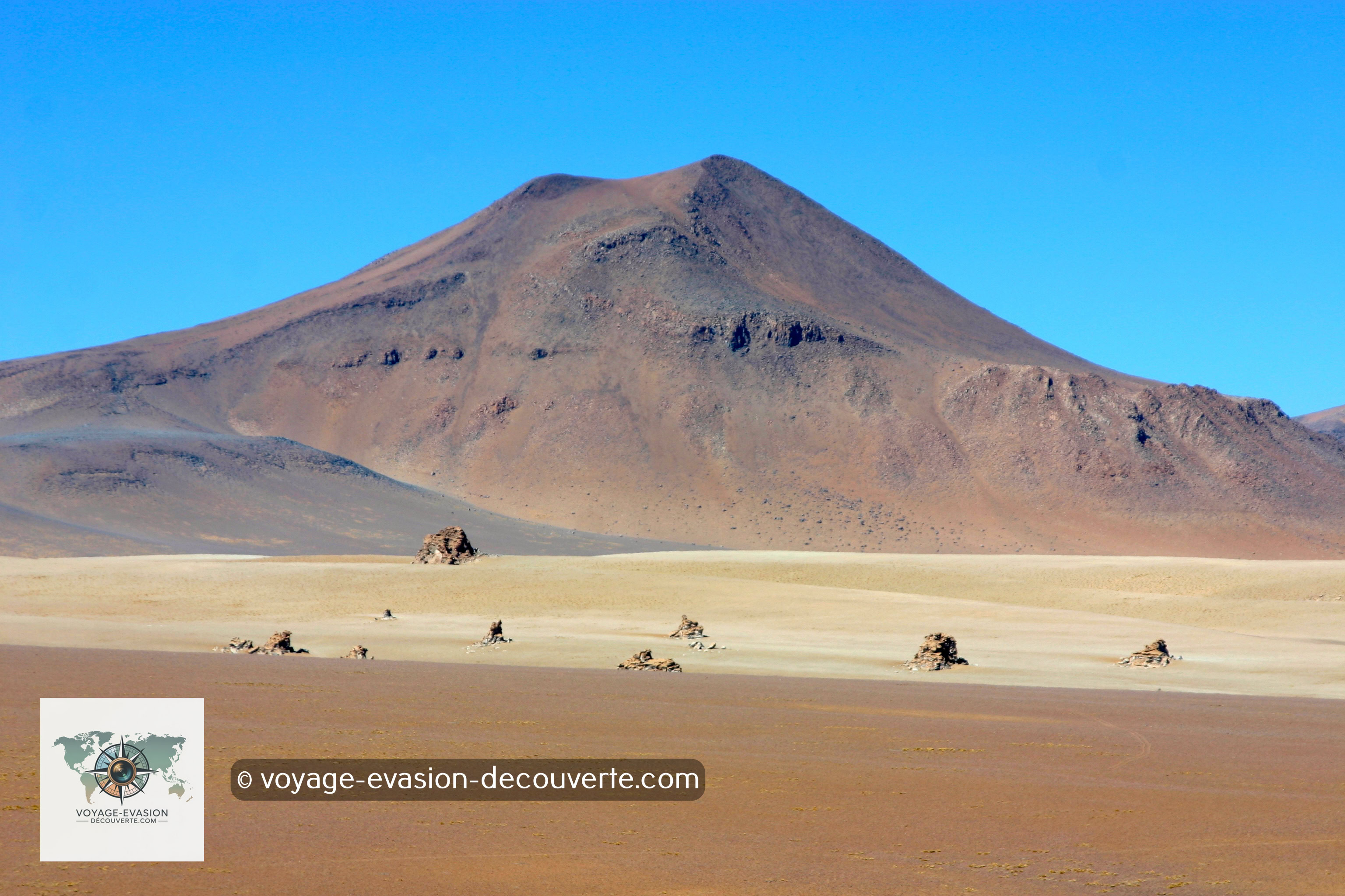 Nous reprenons ensuite la route en direction du Sud Lípez, sur une piste de sable traversant des paysages grandioses et arides jusqu’à la vallée des Roches, en plein désert de Siloli.