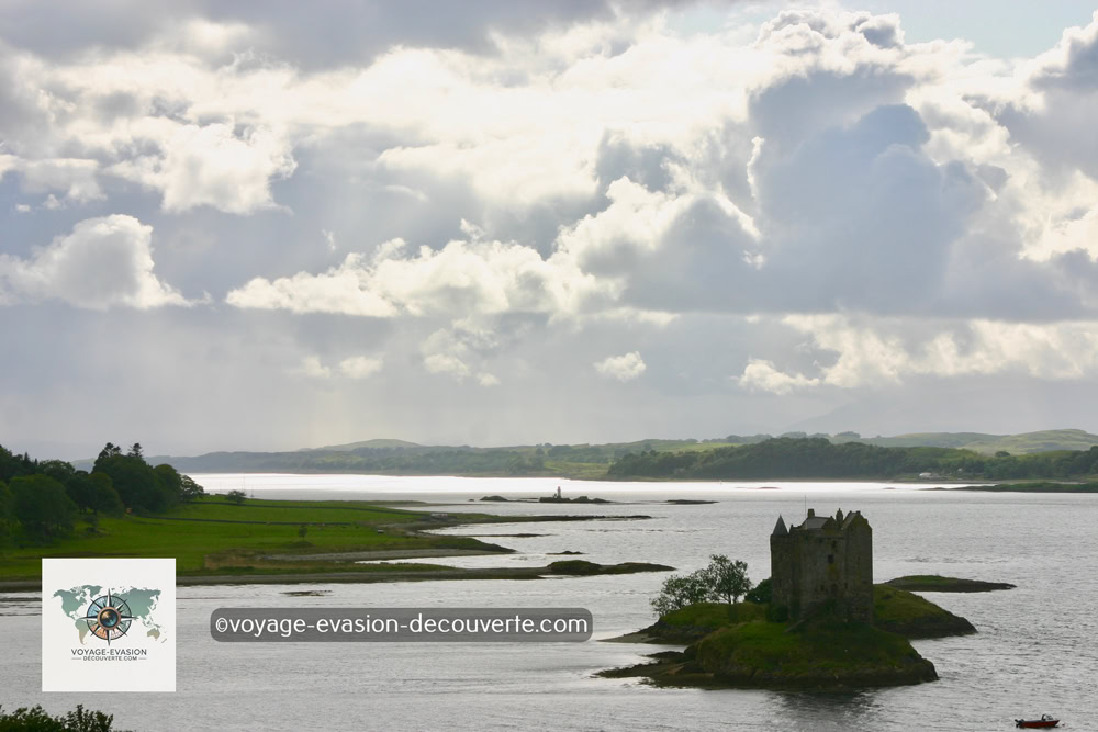 Perché sur un minuscule îlot rocheux au cœur du Loch Laich, un bras du loch Linnhe, le château de Stalker se dresse fièrement face aux montagnes du Morvern et de l’Ardgour.