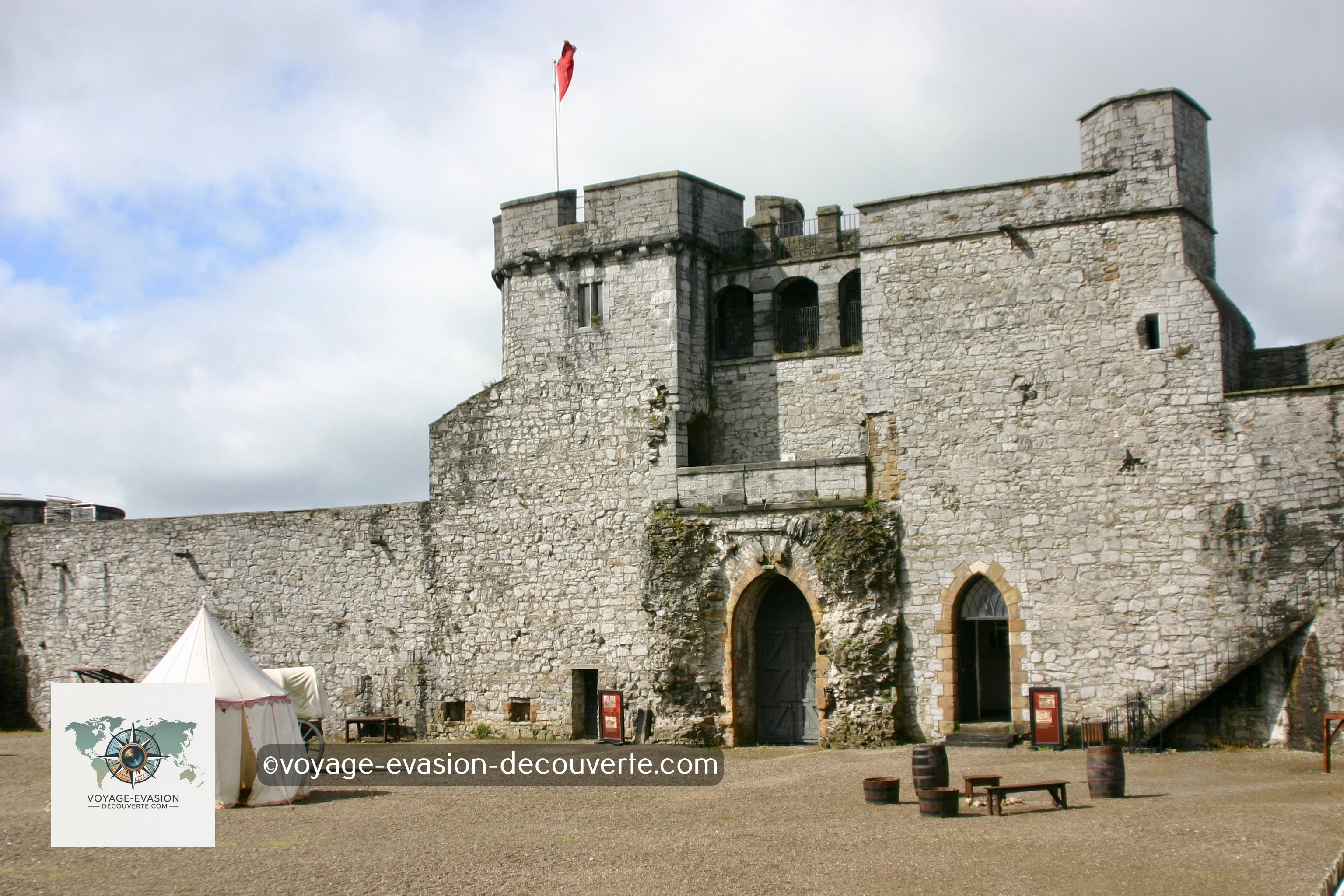 Le château du Roi Jean (King John’s Castle) domine la ville de Limerick depuis les rives de la rivière Shannon. Il est bâti sur les fondations d’une forteresse viking datant de 922, ce qui en fait un témoignage unique de l’histoire médiévale de l’Irlande. Reconstruit et fortifié au début du XIIIe siècle sous les ordres du roi d’Angleterre Jean sans Terre, il servait à contrôler la région et à protéger la ville des invasions. En parcourant ses remparts et ses tours, on peut imaginer les combats, les sièges et la vie quotidienne des habitants médiévaux. Le château abrite aujourd’hui un musée qui raconte son histoire ainsi que celle de Limerick à travers des expositions interactives et des objets d’époque.