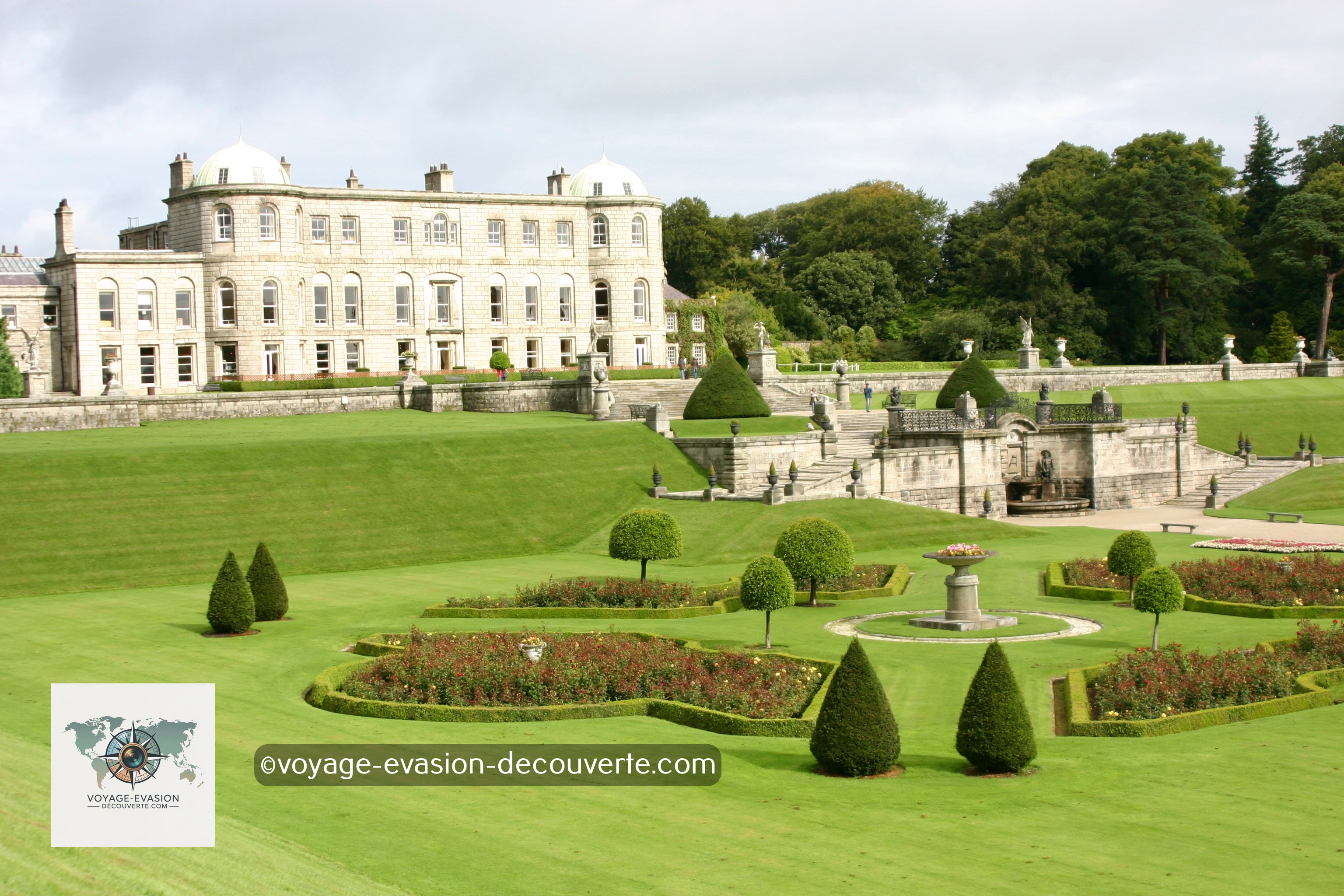 Mais la véritable attraction des environs, c’est la propriété de Powerscourt — un joyau du patrimoine irlandais. Cette vaste demeure de style palladien, entourée de 19 hectares de jardins somptueux, est l’un des plus beaux domaines d’Irlande.