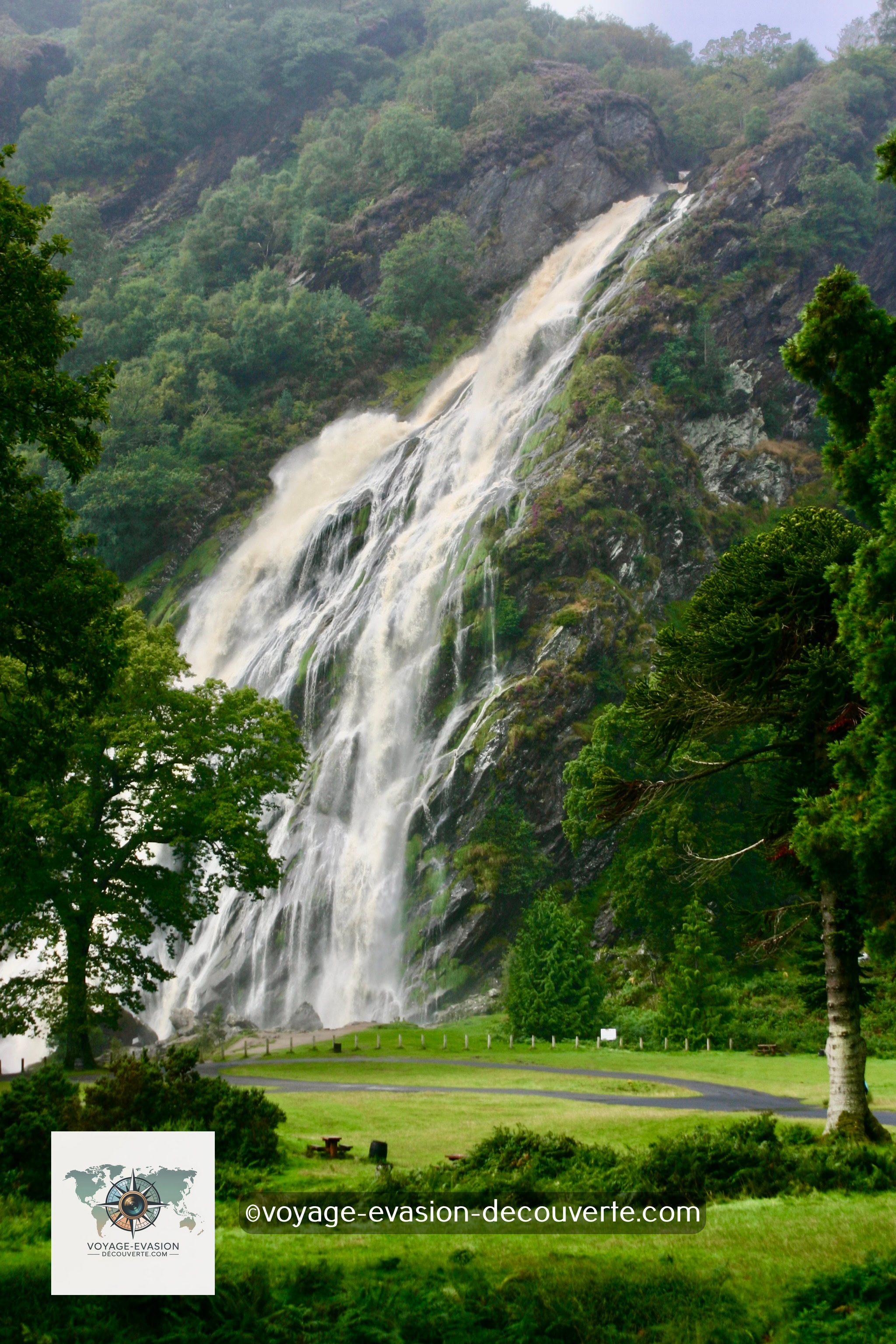 À quelques kilomètres de là, la cascade de Powerscourt, haute de