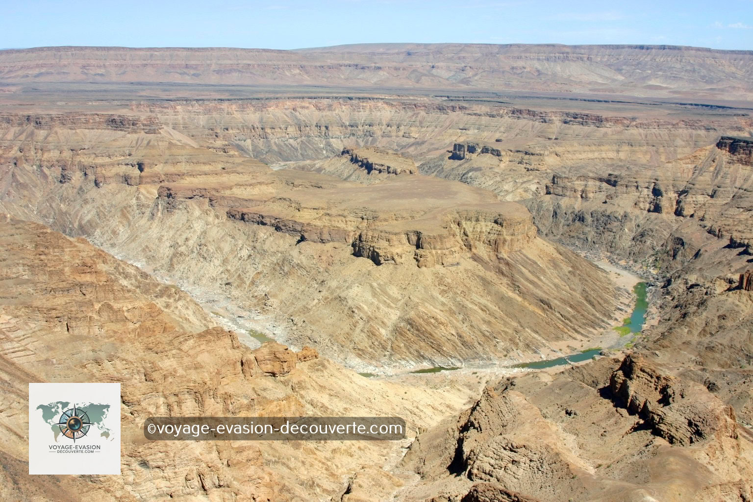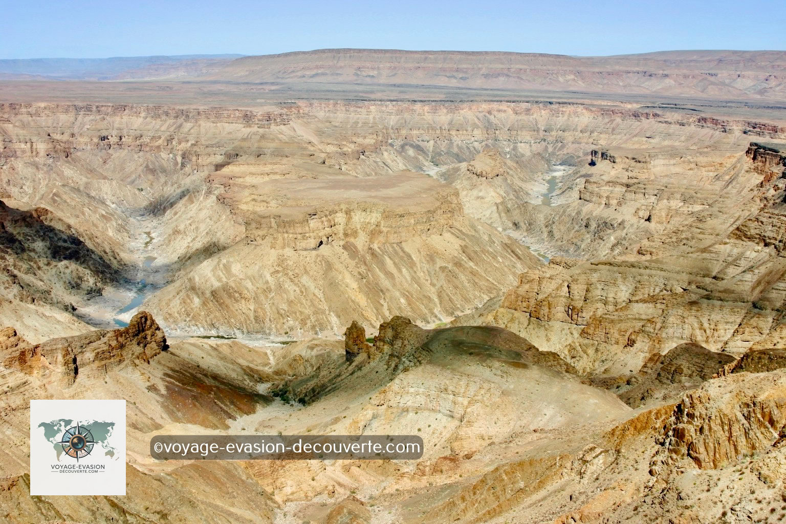 Une véritable prouesse géologique, âgée de près de 1,8 milliard d’années, façonnée au fil des millénaires par la rivière Fish, aujourd’hui souvent réduite à un mince filet d’eau serpentant au fond de la vallée.