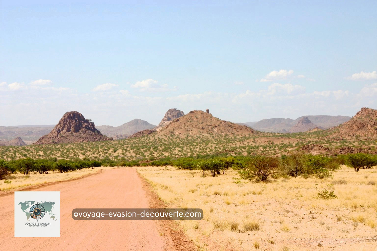 Le matin, nous avons pris la route vers l’Est en direction du Parc National d’Etosha.