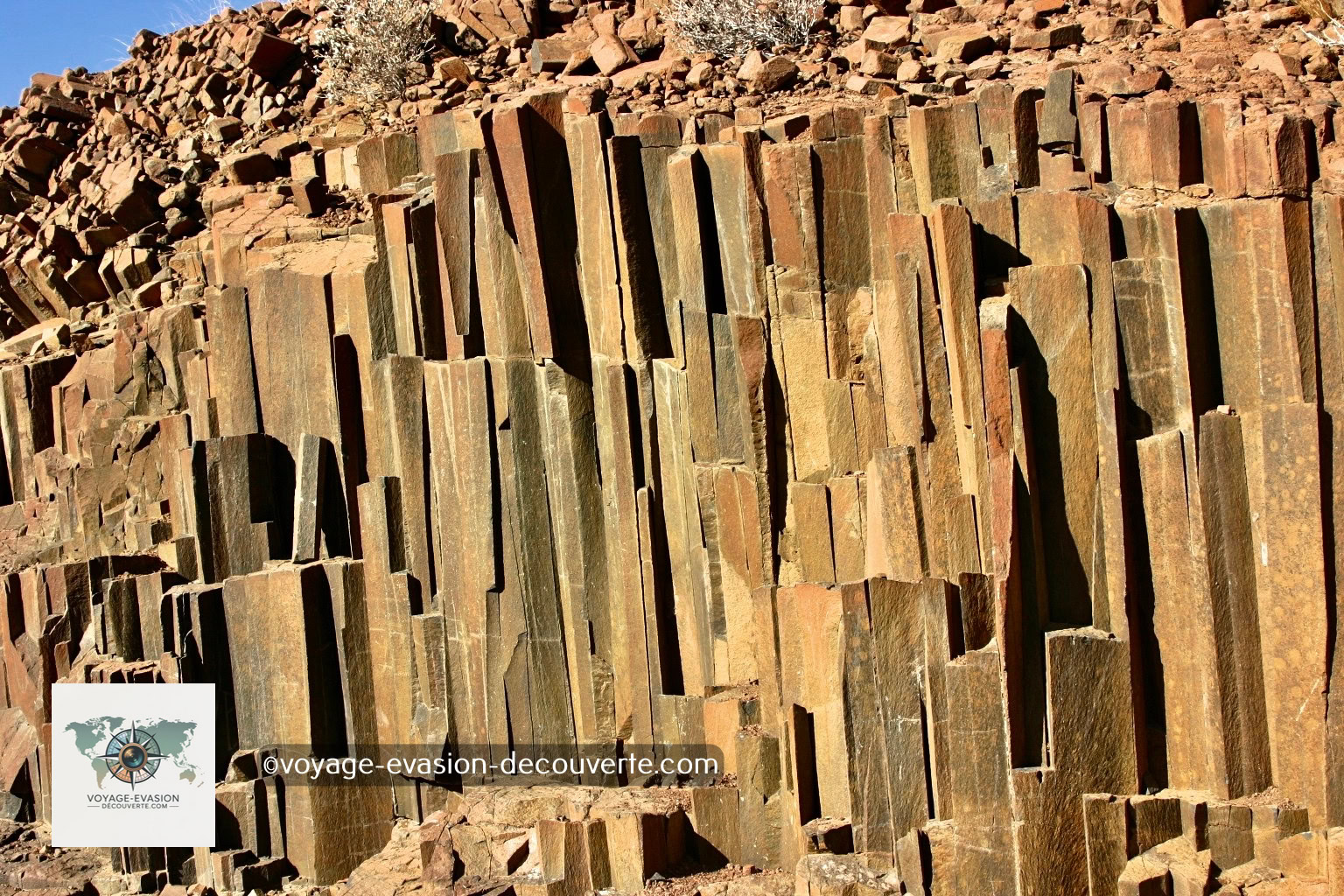 À proximité, se trouvent les Organ Pipes, les Tuyaux d’Orgue, situés près du petit inselberg de Burnt Mountain, à l’Ouest de la ville de Khorixas. C'est une formation rocheuse spectaculaire composée de basaltes cylindriques qui ressemblent, comme leur nom l’indique, aux tuyaux d’un orgue.