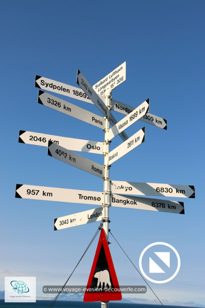 À la sortie de la ville, des panneaux signalétiques rappellent le danger permanent : ici, les ours polaires font partie du paysage.