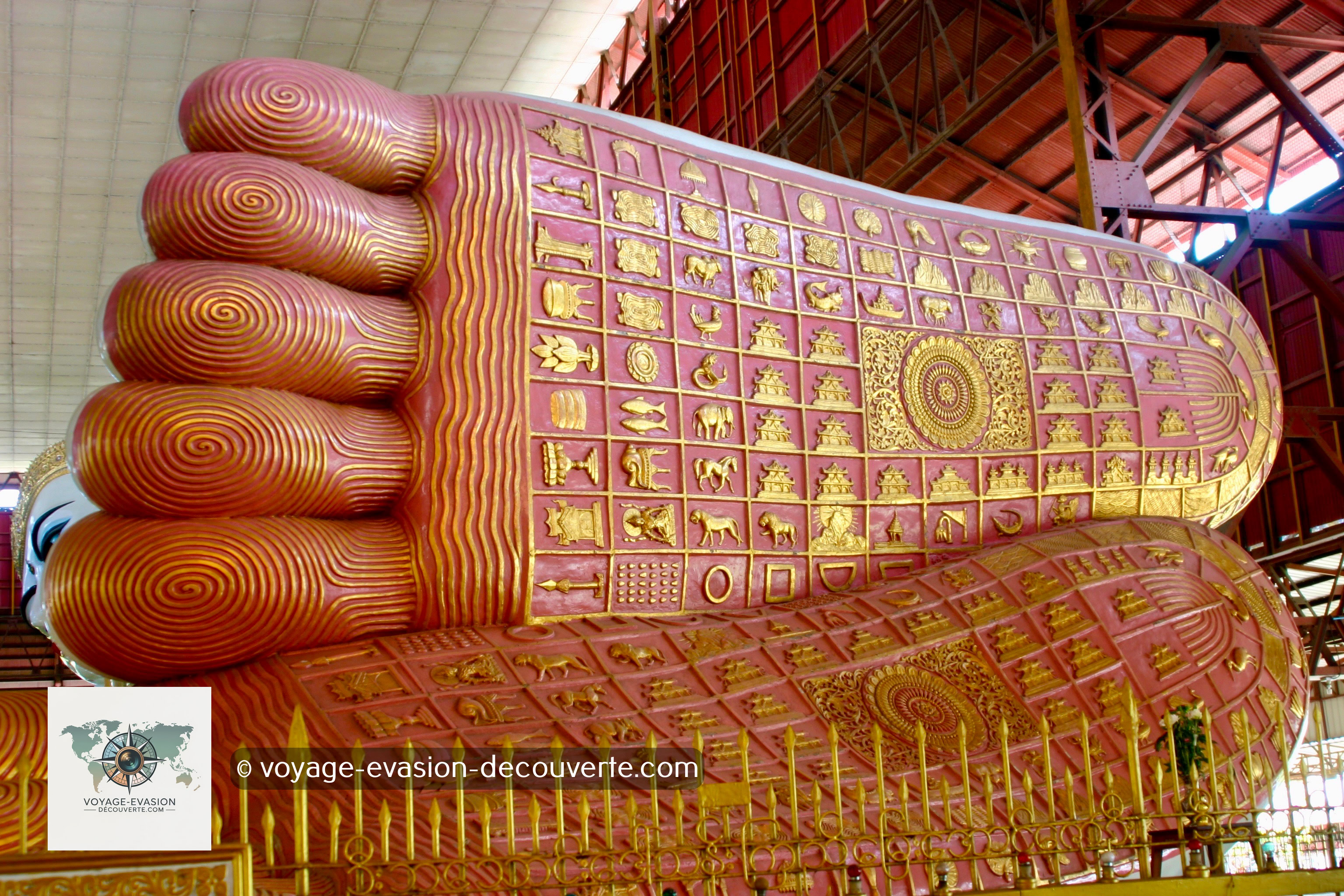 Long de 66 mètres, le Bouddha repose paisiblement dans un vaste pavillon métallique, dont la simplicité contraste avec la grâce délicate du visage et le raffinement des détails.