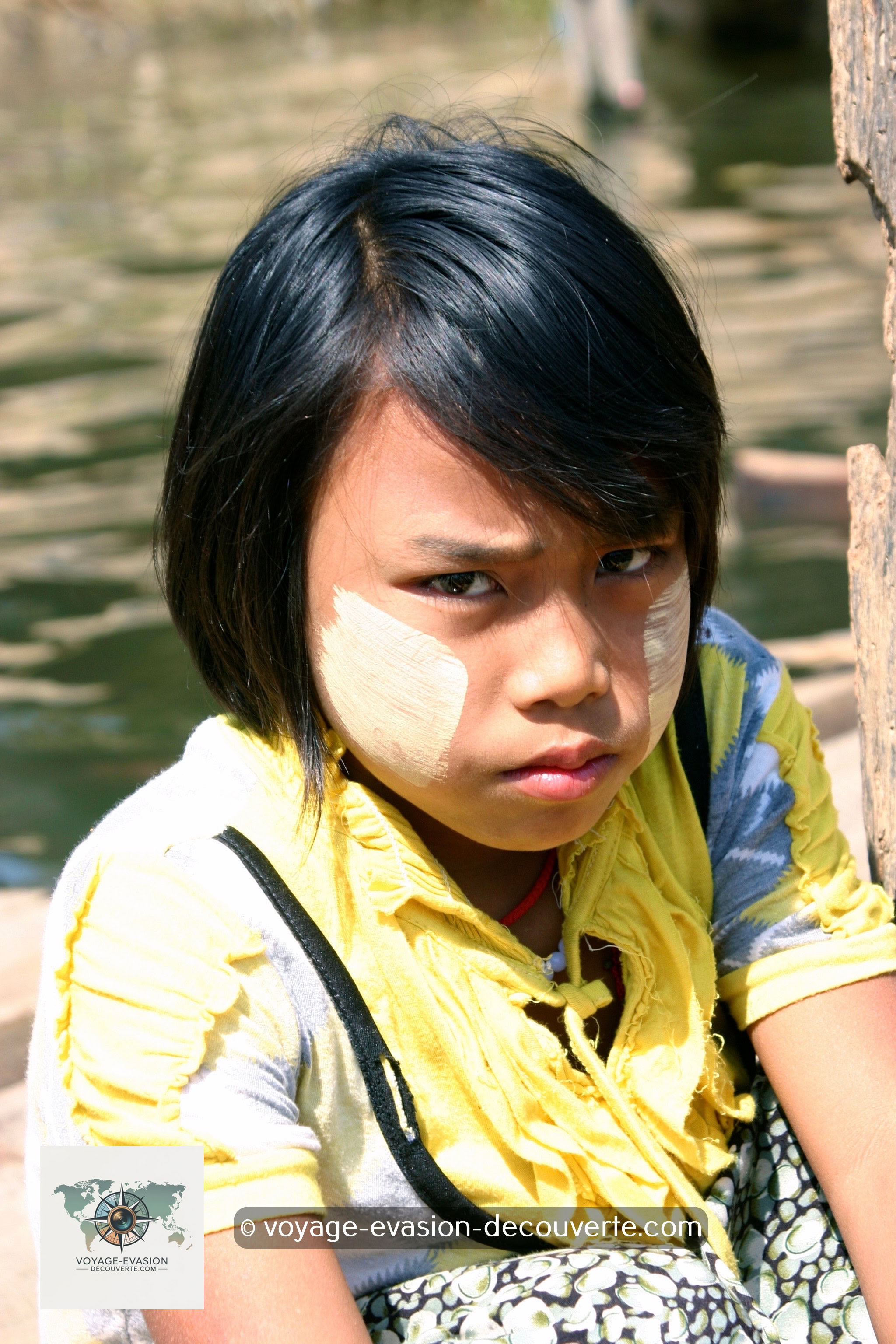 Leurs visages, d’une beauté douce et digne, sont recouverts d’une fine couche de Thanaka, cette pâte végétale blanc-jaune utilisée en Birmanie depuis plus de deux millénaires.