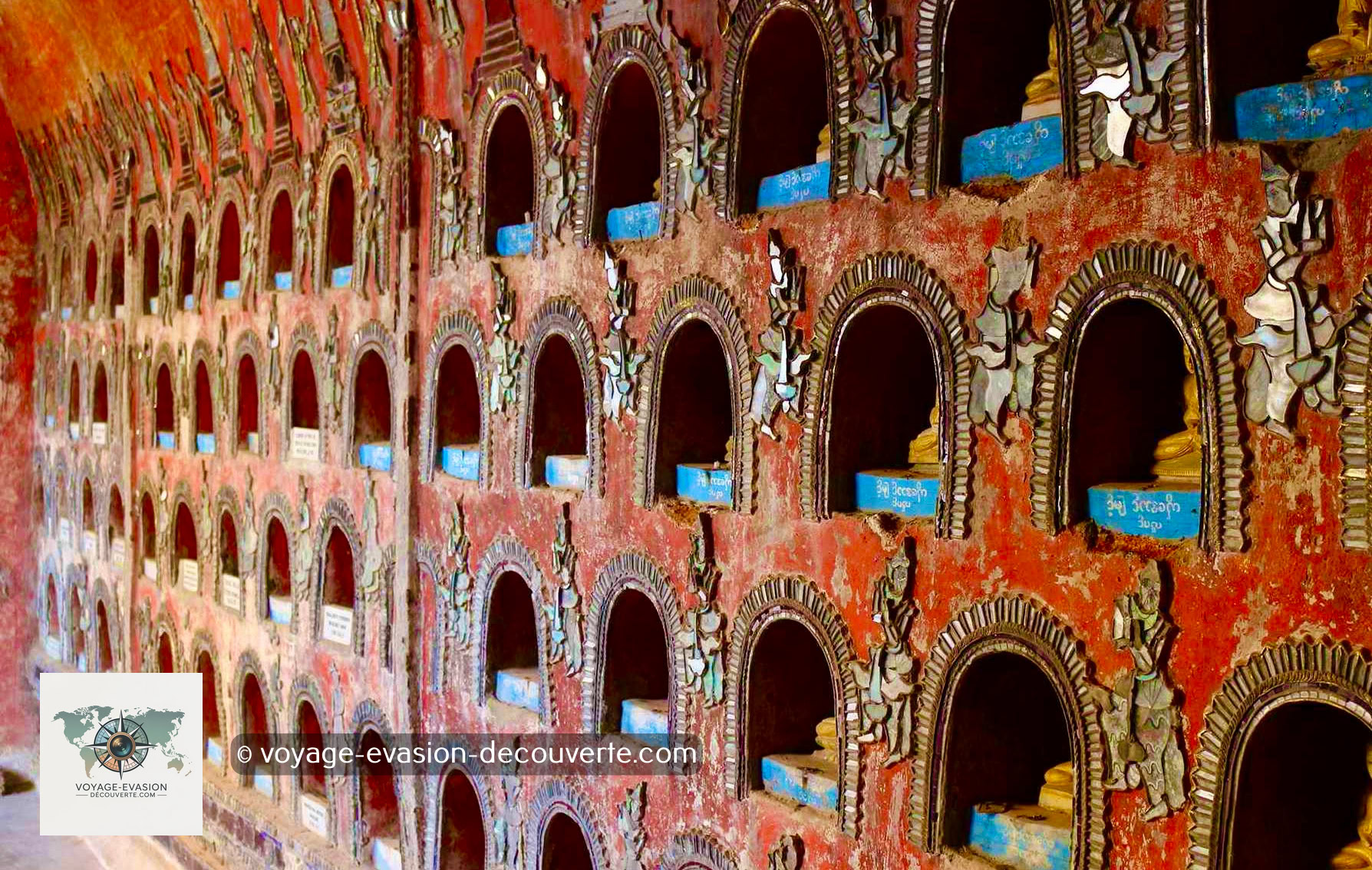 Non loin de là, une petite pagode abrite de splendides peintures murales retraçant la vie du Bouddha, ainsi qu’une centaine de niches où reposent de petites statues dorées.