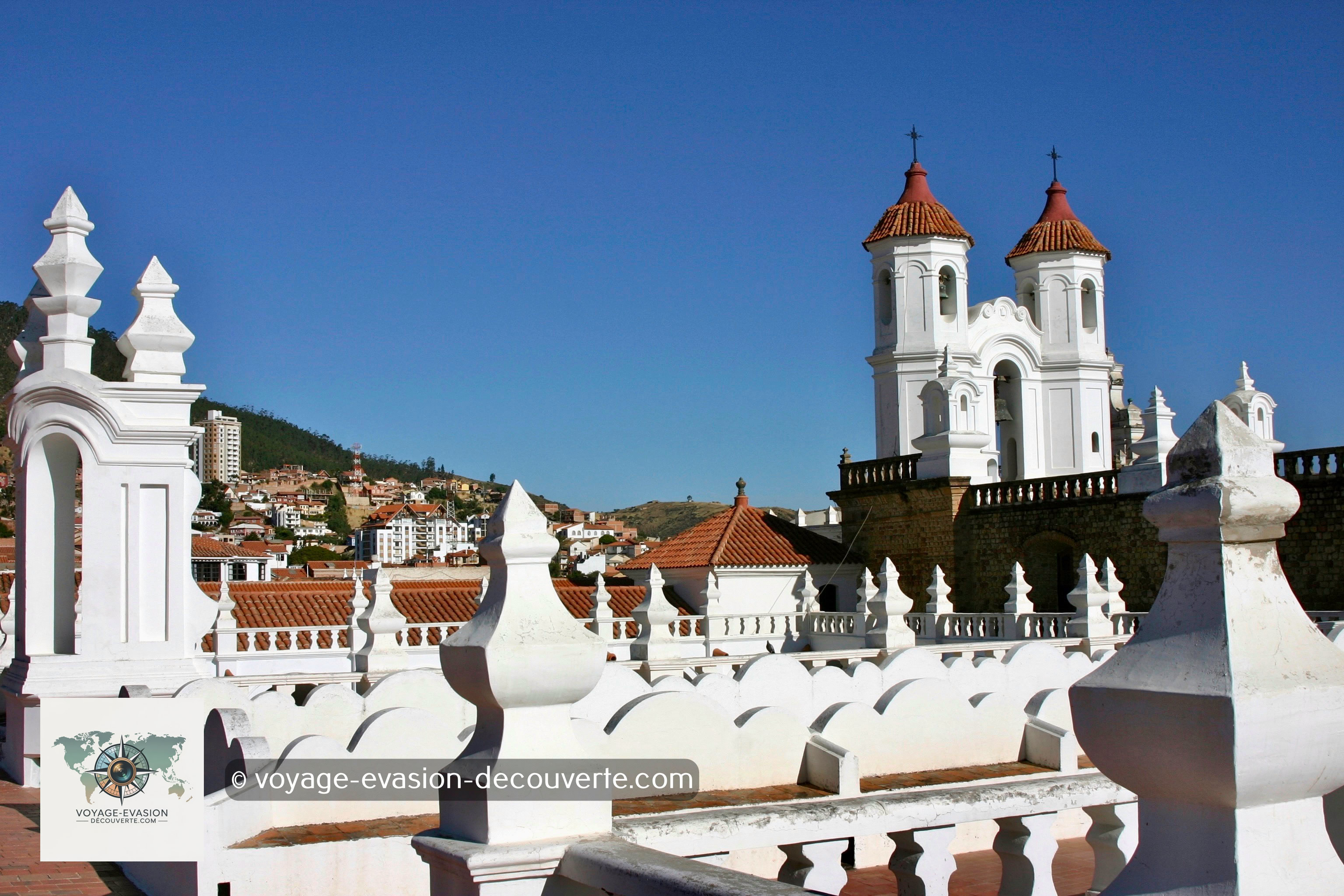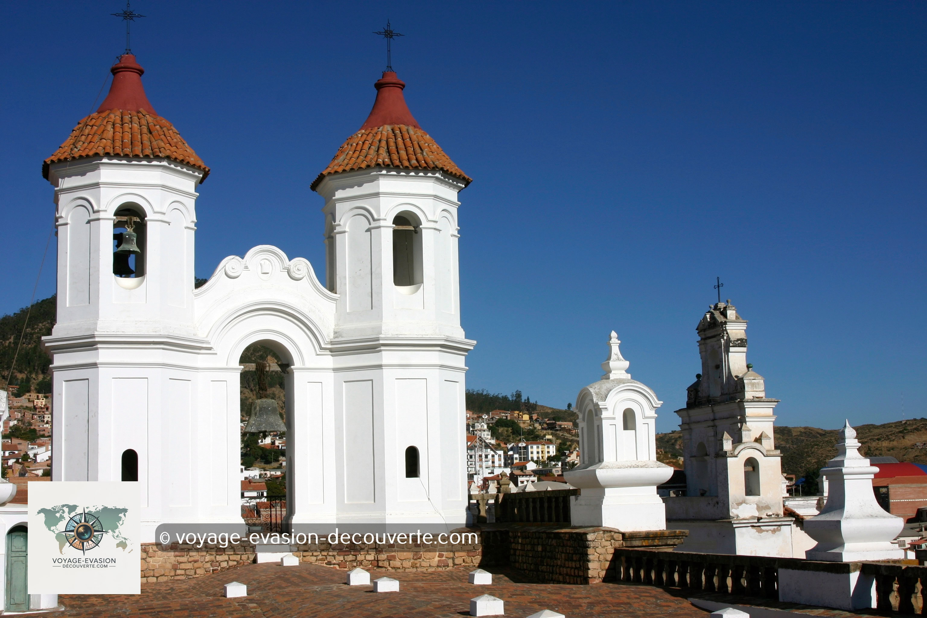 Son architecture blanche aux dômes bleu azur contraste magnifiquement avec le ciel limpide des Andes.