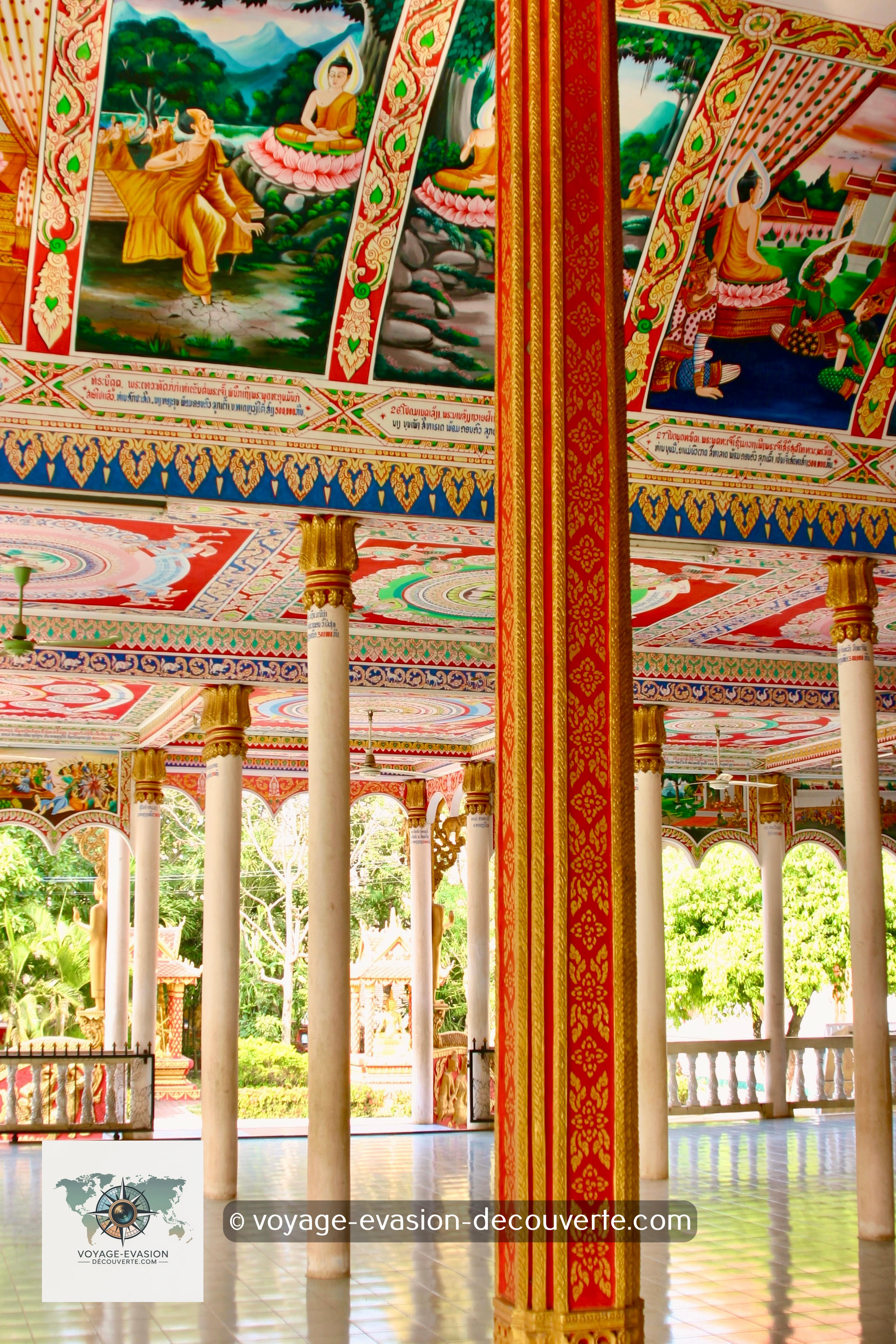Le sanctuaire, à nef unique, s'élève au centre d'une cour entourée d'une galerie où s'alignent des centaines de niches abritant de petites statues de Bouddha.