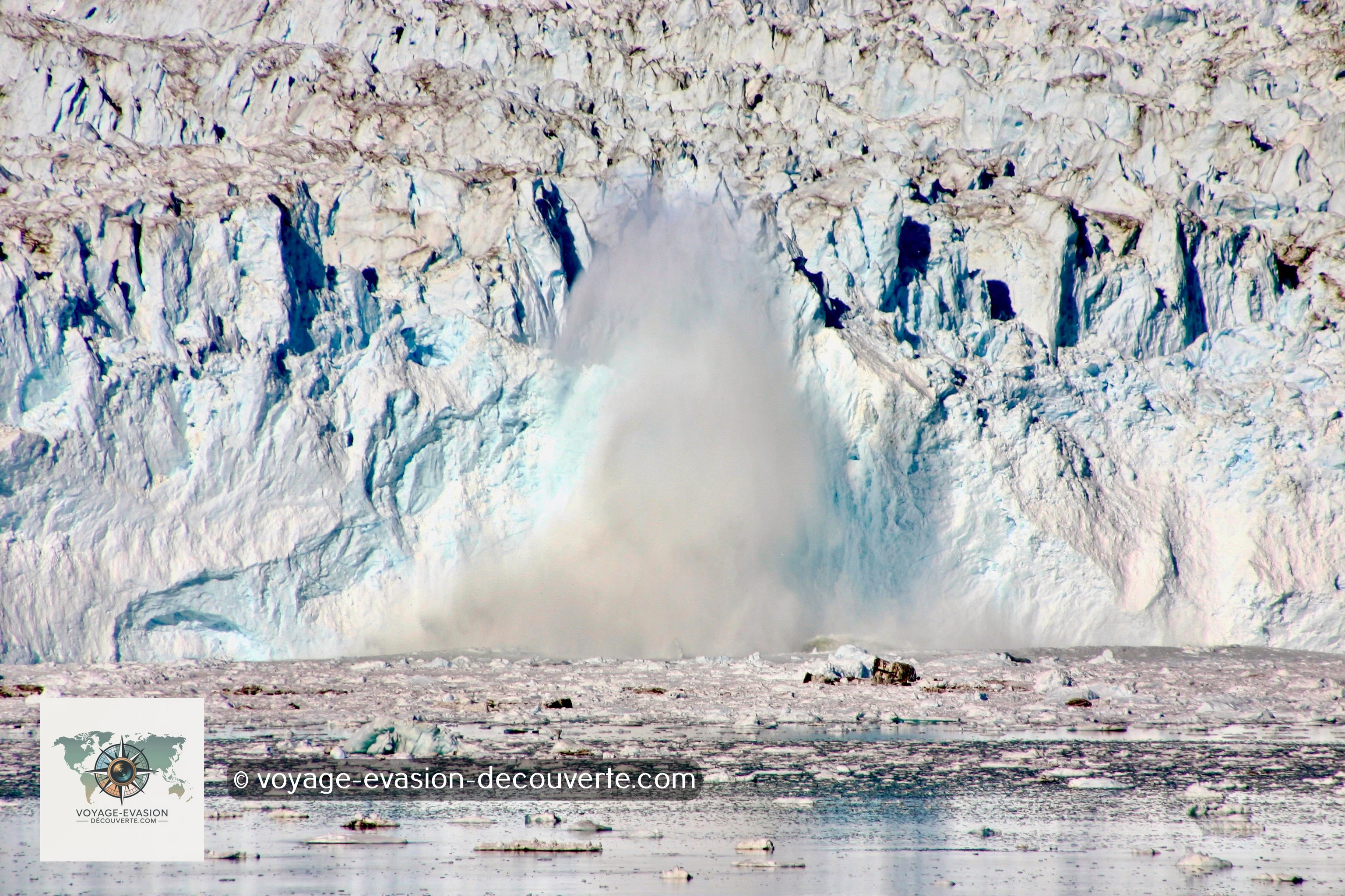 De leurs fronts se détachent d’immenses icebergs, emportés ensuite par les courants marins.